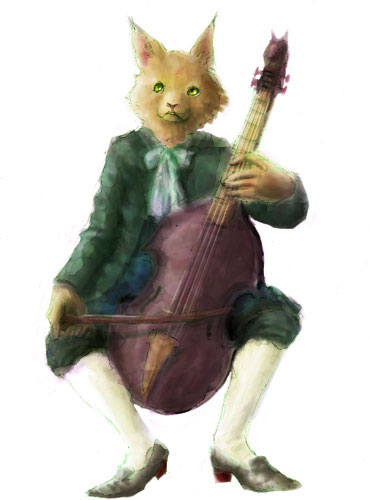 前の絵の猫とほぼ同一人物。 でも上での楽器はチェロだけど、この絵ではヴィオラ・ダ・ガンバ。