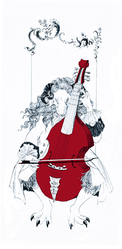 そして、ミュゼット(のようなもの)を持たせたカエルどんが、ちょっと卑猥な感じになってしまった。(豆知識;伝統的にバグパイプは、田舎風の記号であるとともに、エロティックな象徴とされる)