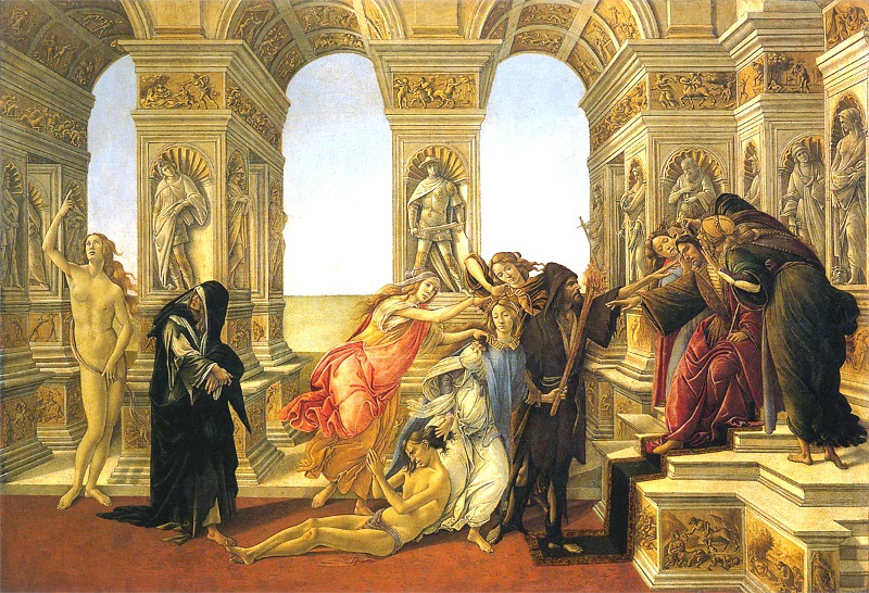 古代ギリシアの高名な画家、アペレスが描いた絵をボッティチェリが再現した、というもの。