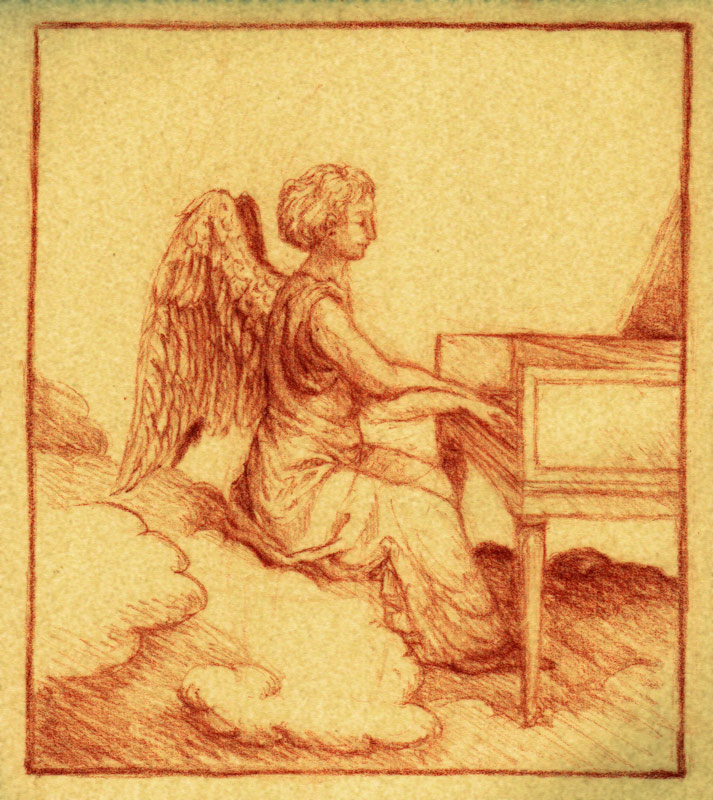 天使って、ハープやヴァイオリンやヴィオールやリュートは弾くけどチェンバロ弾かないな、試しに弾いてみようか、という動機。
