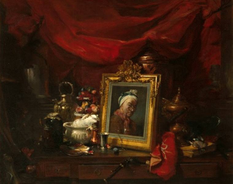 大画面の中央にシャルダン先生の自画像が画中画で置かれている。