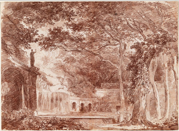 ロベールの素晴らしいエステ荘の噴水素描と、