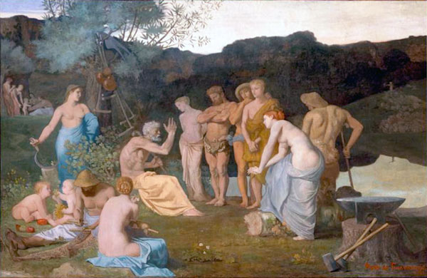 シャヴァンヌが壁画を描いていた十九世紀後半のフランスは、フランス革命以後の度重なる内乱と、プロイセンとの戦争によるパリの破壊と敗戦、続く市民たちの最後の抵抗たるパリ・コミューンでの虐殺と、大変な激動の時代でした。