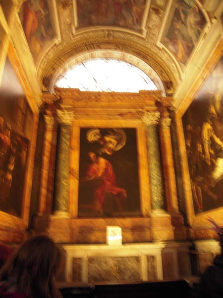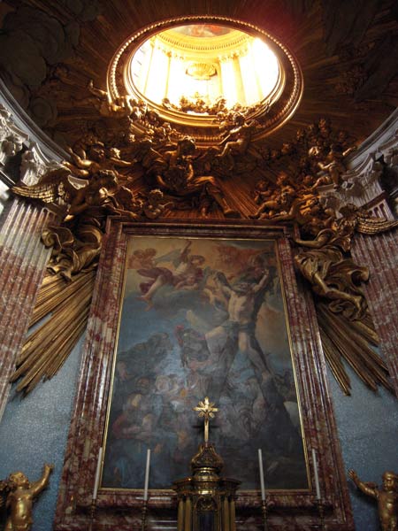 肝心の祭壇画は、じつは絵そのものはどんなだったか忘れてしまった。 絵の枠はバロック風で、放射状の光の筋の彫刻が絵を縁取っている。