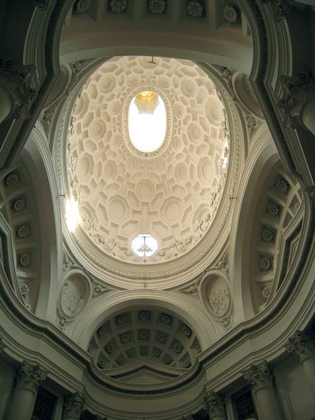 先ほどのベルニーニの金と天井に張り付いた彫刻とは違って、何も添加した飾りはありません。が、中心になるほど小さくなる幾何学模様の陰影が装飾になっている。