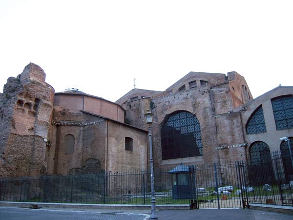 テルミニ駅の方へ向かうと、ミケランジェロが屋根を設計したという、古代のディオクレティアヌス帝の浴場跡を転用したバシリカ。遺跡っぽさは残りつつ、見事に現役の建物として修復されている。