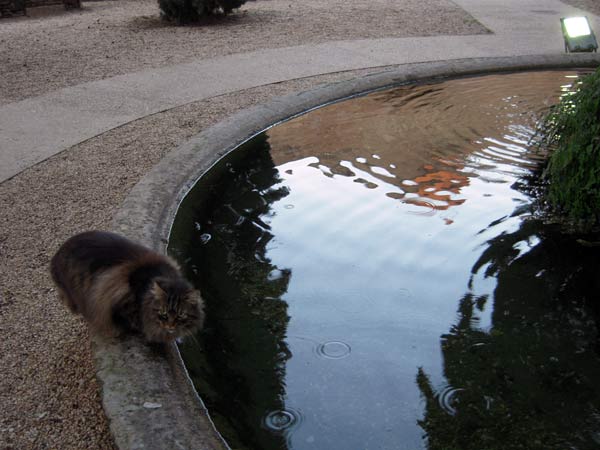 おまけ庭の噴水にて。よくある世界猫歩き(笑)