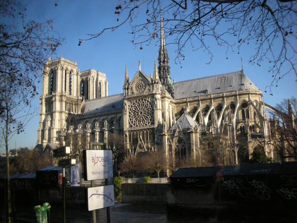 壁の全面で荷重を支えるため、窓を大きくとれないのがロマネスク建築。 強度を保てるよう縦に細長い小さな窓が数メートルおきに開いていて、でもその窓は一応ゴシック風に尖頭アーチ。