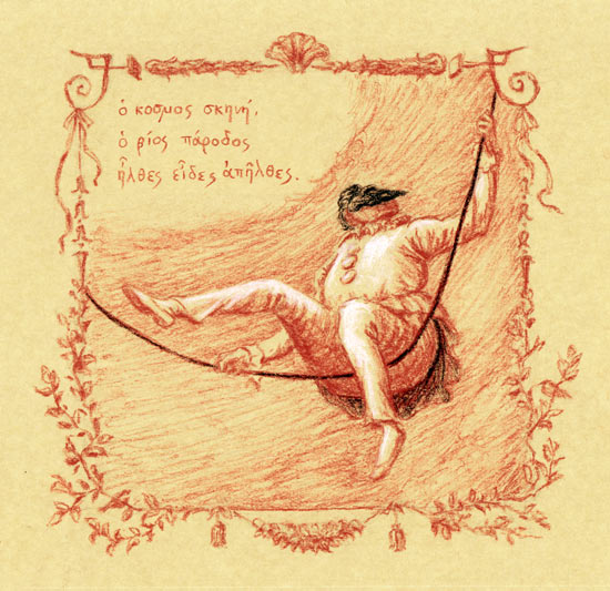 さて、ギリシャ文字ほぼ関係ない絵柄の方ですが、描かれたるものはプルチネッラという道化師の役柄の一つです。たしかナポリ出身設定。