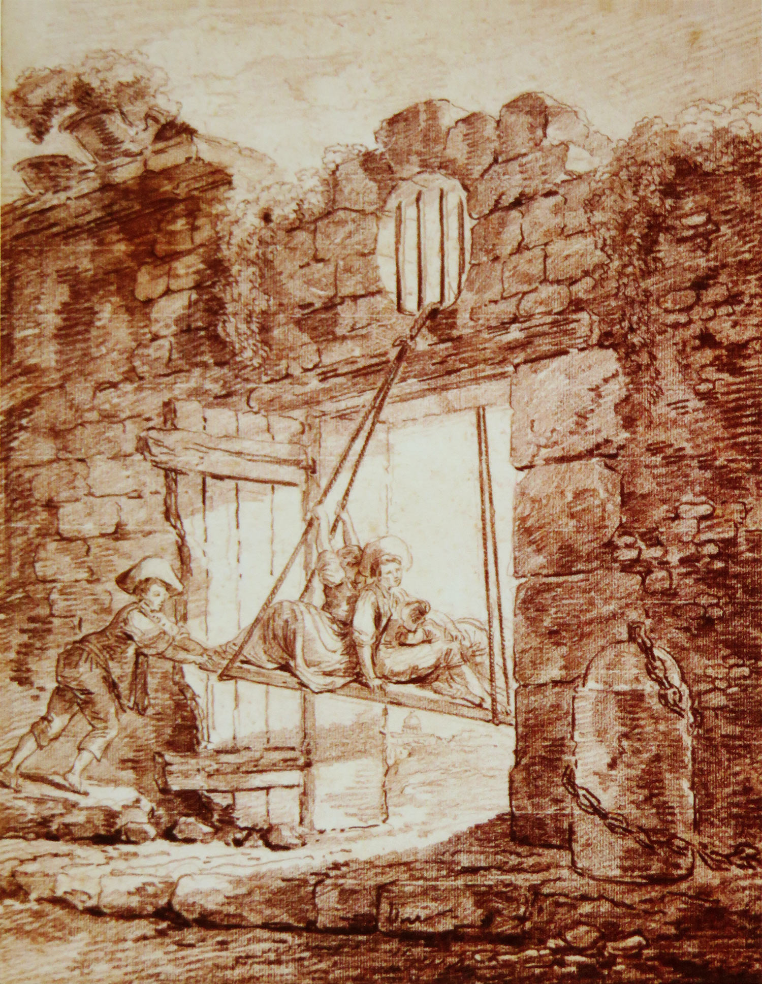 ユベール・ロベール<戸口の下のぶらんこ遊び>