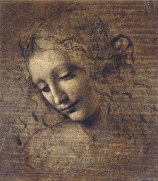 慎ましげに目を伏せ、顔をやや傾ける女性、というのがレオナルドの好みのタイプらしく、まさにそのままな「ほつれ髪の女」。
