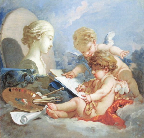 左;フランソワ・ブーシェ<絵画の寓意>、右;<詩の寓意>