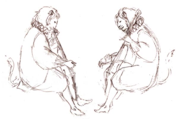自分としては、自分の絵はどれもアコースティックな古楽サウンド方面だとばっかり思っていたので、そのまろりーのイラストをこのような音楽のイメージで採用してもらえるとは夢にも思わず、嬉しい驚きです。