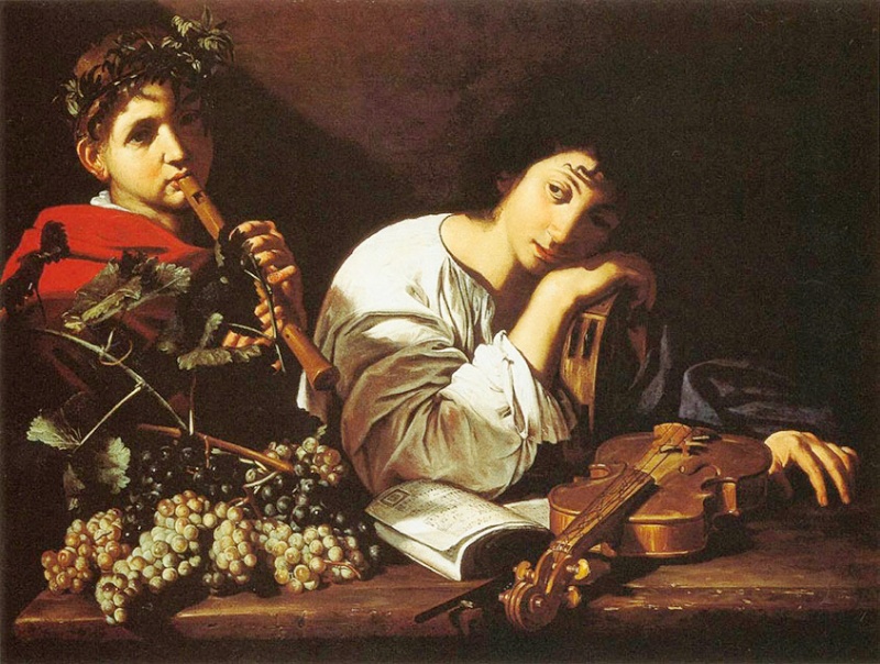 カラヴァッジョとカラヴァッジョ追随者の辺りには、楽器の絵が多い。