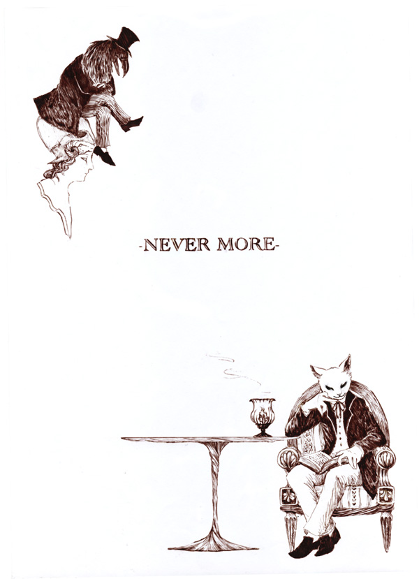 で、このロマンなる否定の精神のなかでも「大鴉」中の「Nevermore.」の執拗な否定はとびきり素晴らしいと思います。