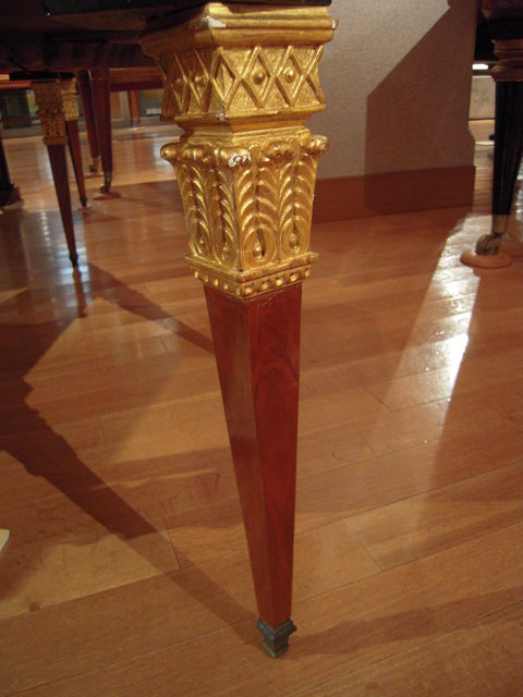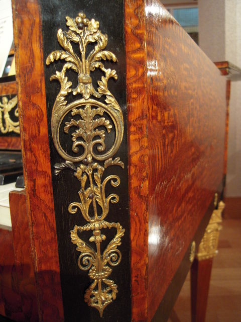 先に見たエラールの白いピアノもそうだったので、曲線的であることを旨とする19世紀末のアールヌーヴォー系かと一瞬思ったけど、実はもっと早くて1820年頃のもの。時代的にはルイ18世、王制復古の頃。