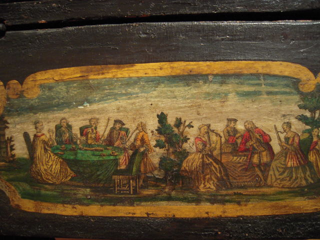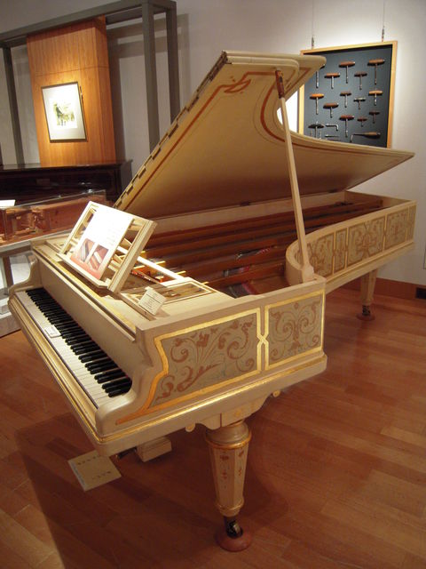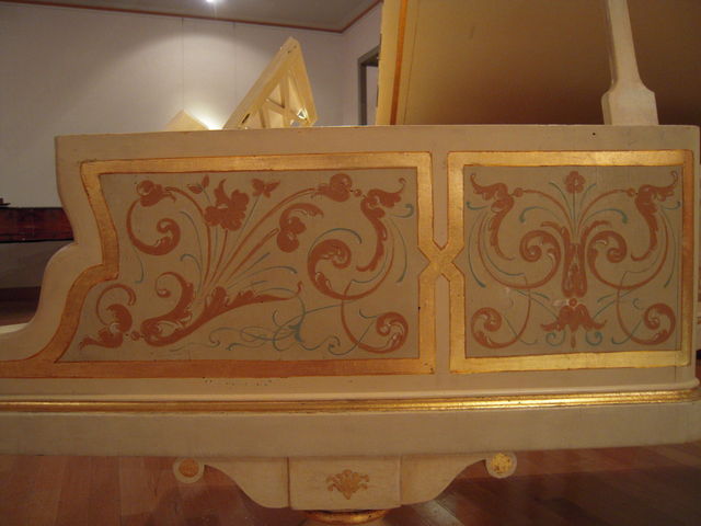 大きく高価な楽器であり、インテリアを左右する家具でもあったので、華やかに装飾されたりする。