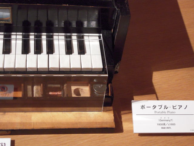 さて中に入ってとりあえず手近な日本の楽器を見ていると「鍵盤室で10分ほどの解説&演奏があります。」と呼ばわう声があり、いそいそと参加し、そのまま大はしゃぎで1時間毎にある鍵盤楽器の解説と演奏をごく自然に3度聞くという満喫振り。