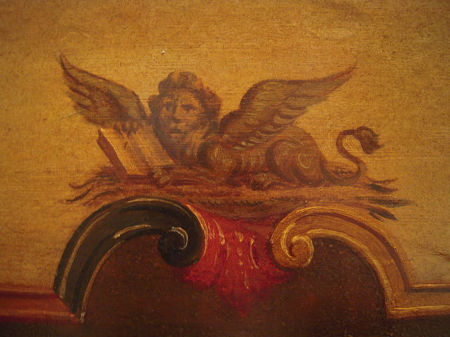 この絵の当初の目的も、詳しくは知りませんが、扉の上を飾るか、衣装箪笥を飾るか、そんな感じだったように見えますので、かなり的を射ているとも思うのだけど、なぜこんなに違和感があるのだろう・・・。・・・電子楽器という現代様式の飾り気の無いフレームに、絵だけバロック調を貼り付けてしまったため?