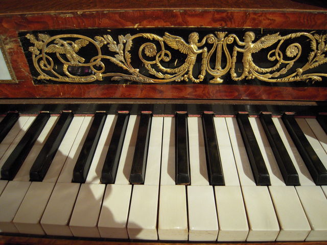 新古典主義を採用したこのピアノは、のちの時代を開く可能性を無限に秘めた楽器としては、前衛的なとんがりを持ちつつも、まだまだひ弱な感じがします。聞く話によれば、昔のピアノは鍵盤も今よりずっと軽いのだって。