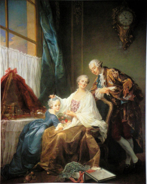 見づらいけど、右上の壁掛け時計が非対称の典型的なロココ=ルイ15世調。これはブランシェのクラヴサンよりほんの少し前の絵。ついでに言えば、こういう家族の肖像画の「親密さ」は、それ以前のバロックには無いロココ的発想の絵だったりします。