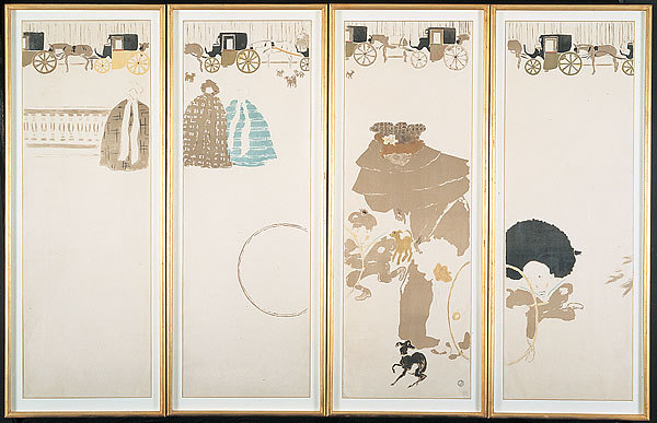 上みたくジャポニスムを採用したきぱっとした輪郭の絵が物凄い格好良い。上の絵は、日本の屏風を意識したリトグラフ。というか、もともと屏風そのものだったかも。灰色使いがとっても格好良い。個人的には、アングラ味の強いロートレックよりお洒落で好き(笑)