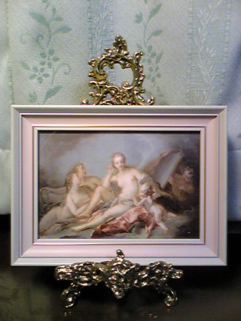 ので、バロックの絵じゃこのイーゼルには重すぎる、かっちり古典主義(古代美術、ルネサンス、新古典系統)な絵はもっての他、百歩譲ってアールヌーボーならいけるかもしれないけど、やっぱりこれに飾るポストカードは、あの男しかいない!と思って、あの男にお出まし願った訳ですが。