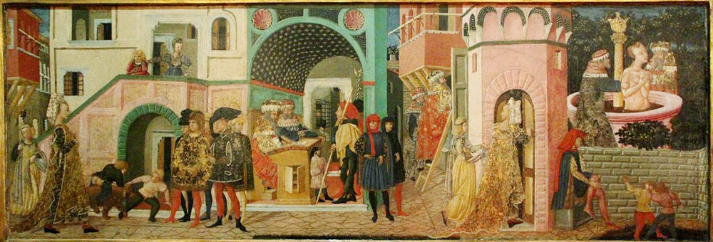 ちなみに、お爺ちゃんたちが権力を振りかざして、水浴び中のスザンナさんに言うこと聞かせようとするのを、スザンナは毅然と拒絶した、という貞淑のお話なので、この画題はお嫁入り道具として相応しいということです。