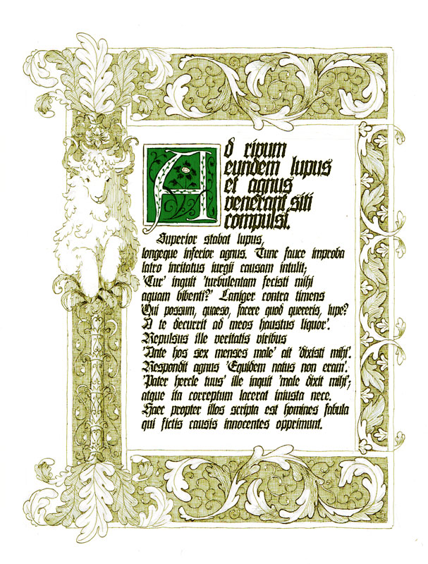 雰囲気づけの為だけのゴシック風の文字列は、羊繋がりでパエドルスの寓話「Lupus et Agnus 狼と羊」です。